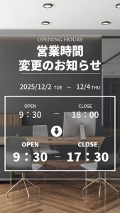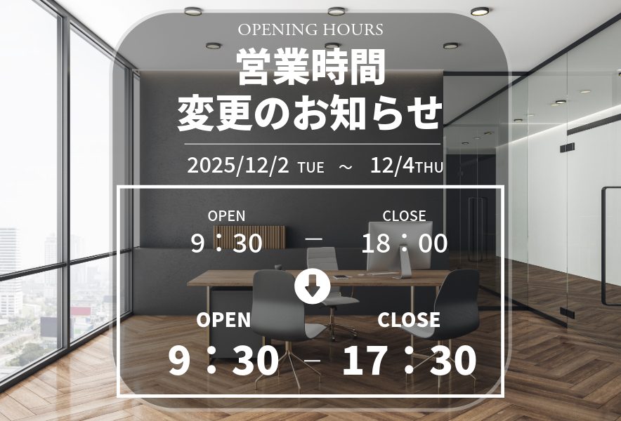 下記の通り営業時間の変更をさせて頂くこととなりました。